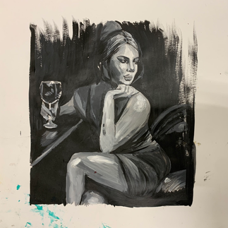 The image I ended up painting was not my own as I left my images at home and borrowed someone else's in the studio. However, I think this was good as it forced me to paint something completely different to what I would have chosen and I ultimately loved the outcome. It ended up looking very 'Noire' which I love the aesthetic of and did consider doing more research into this topic area but I ended up shifting my theme to Indian culture and my family history. Having said that I still think it was useful to try out something different which is why I'm still including this in my creative body of work.